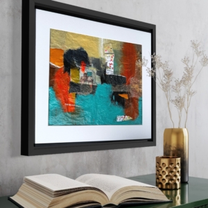 Beautifully framed in black, this piece brings energy, colour, and a fresh artistic presence to any interior.