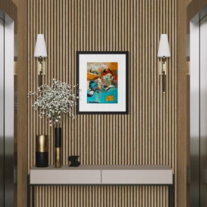 The elegant black frame enhances its modern style. A perfect choice for contemporary interiors, living rooms, offices, and creative spaces.